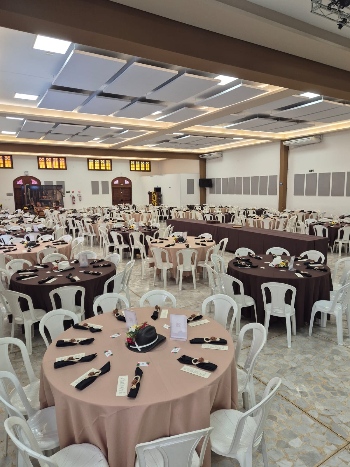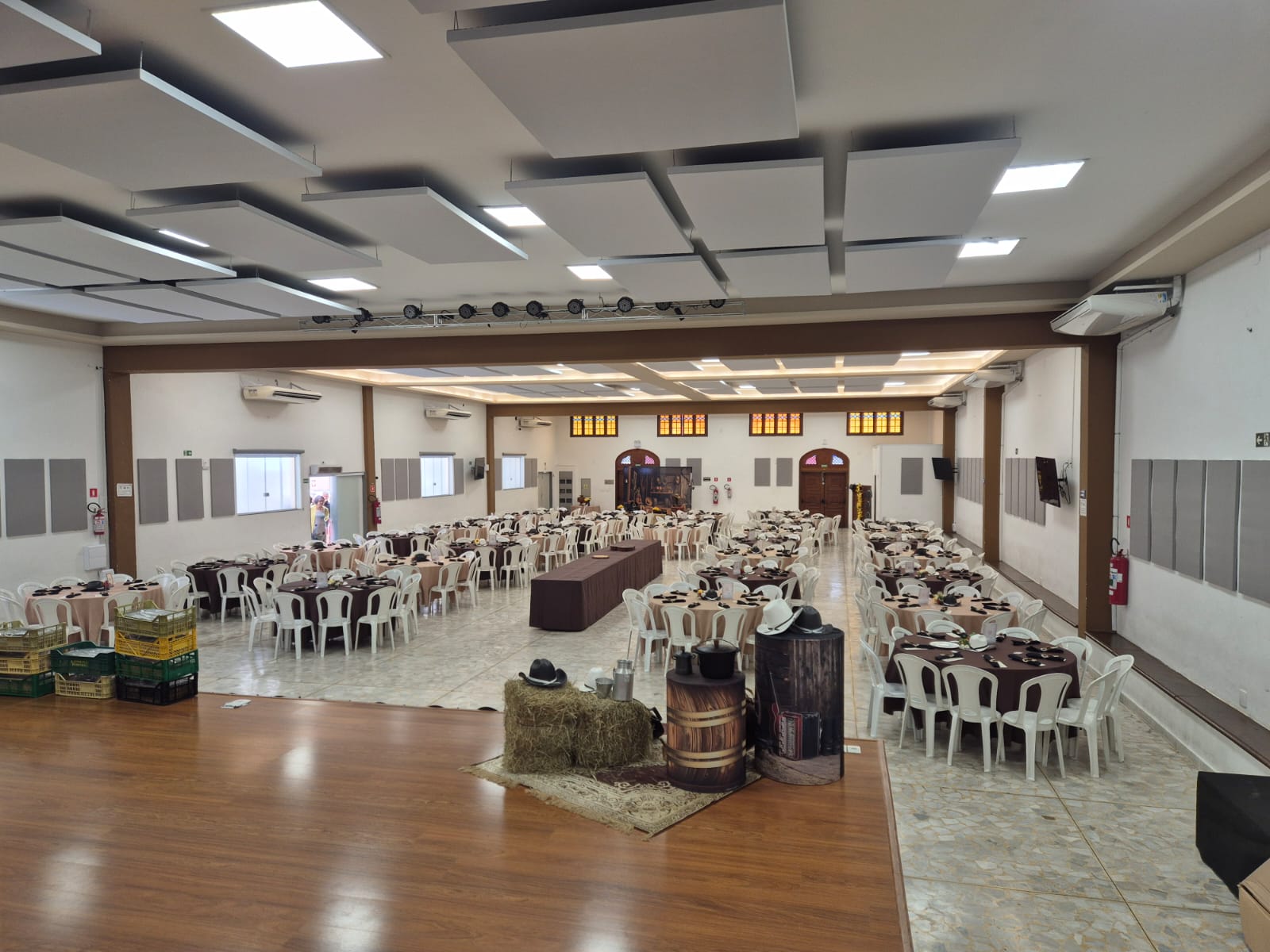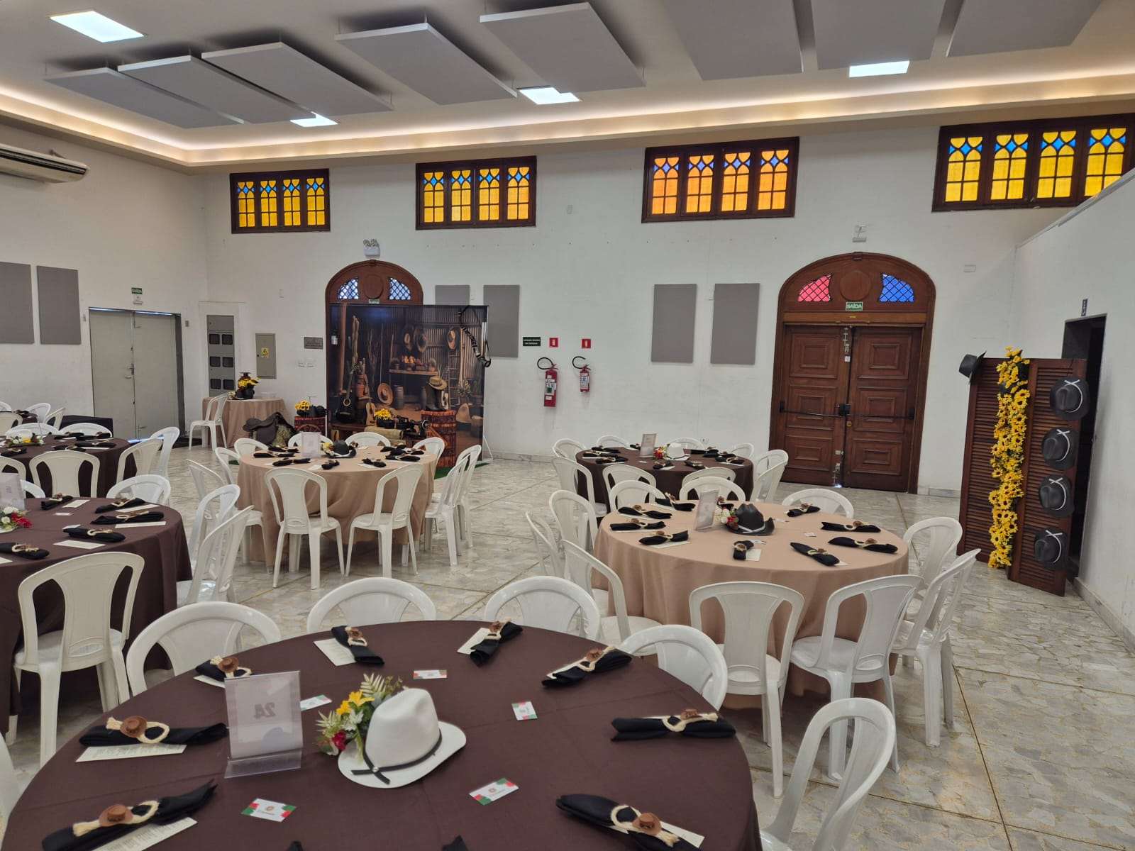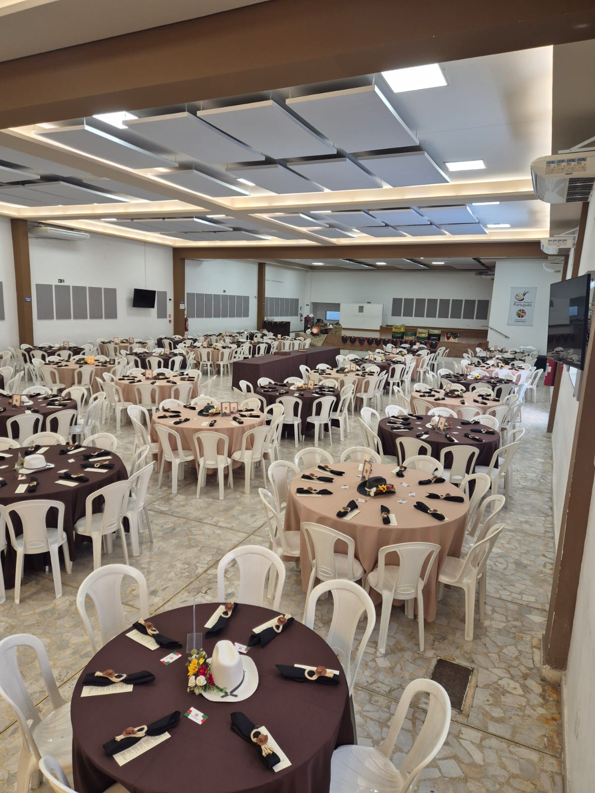 Capacidade: até 400 pessoas (com mesas) ou 600 pessoas (somente com cadeiras).